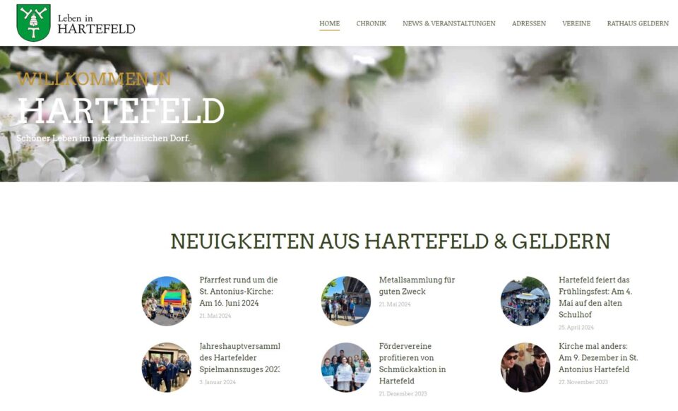 Neue Online-Präsenz für das charmante niederrheinische Dorf Hartefeld in Geldern. Aktuelle Infos und eine ansprechende Plattform für Bewohnern als auch Besuchern bietet die neue Website.