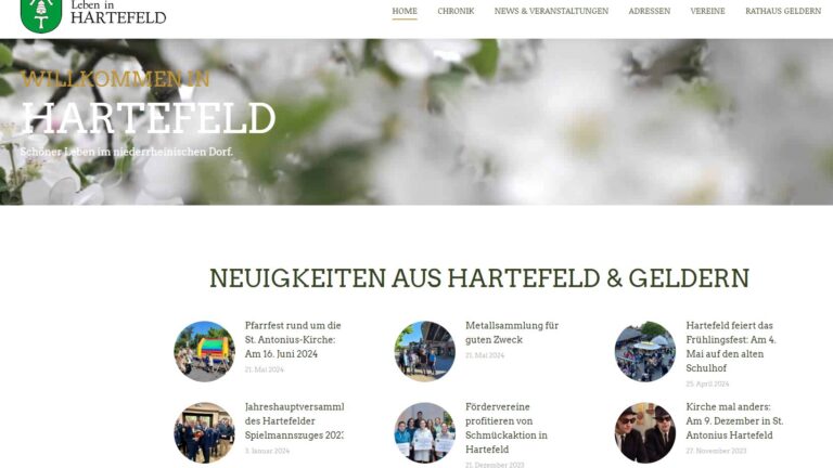 Neue Online-Präsenz für das charmante niederrheinische Dorf Hartefeld in Geldern. Aktuelle Infos und eine ansprechende Plattform für Bewohnern als auch Besuchern bietet die neue Website.